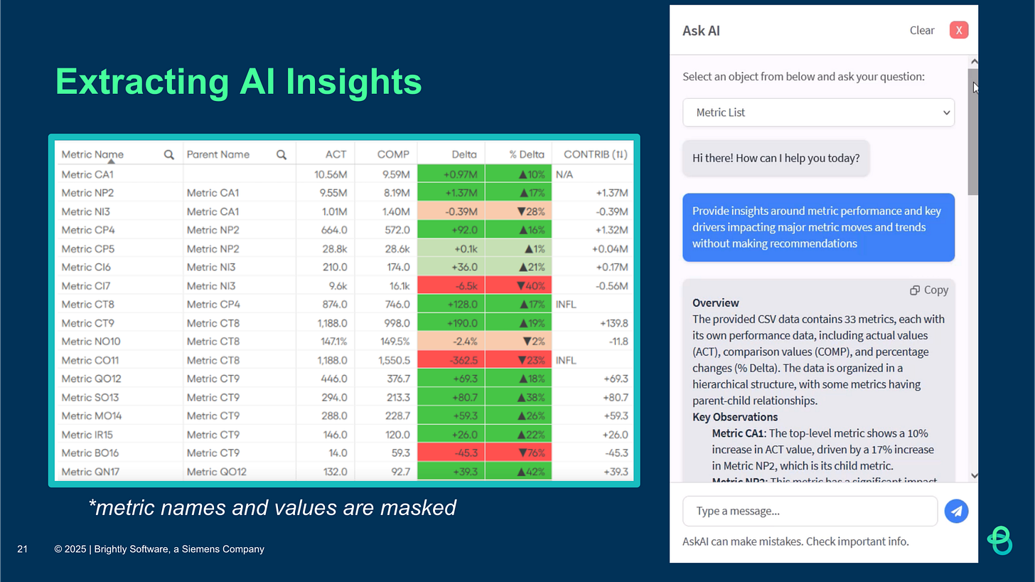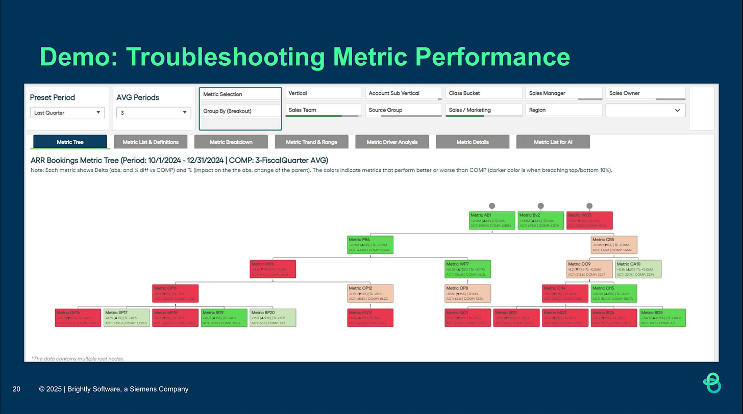 Sergey: One of the cool things about automating trees and metric definitions is leveraging AI to provide automated insights. What we’ve been able to do leveraging LLMs we can feed that data into an AI model and ask, hey, give me a summary of insights based on that metric tree data, what's driving what, what's the root causes of changes, and it actually does it. If people are interested we can do a deeper dive into that.